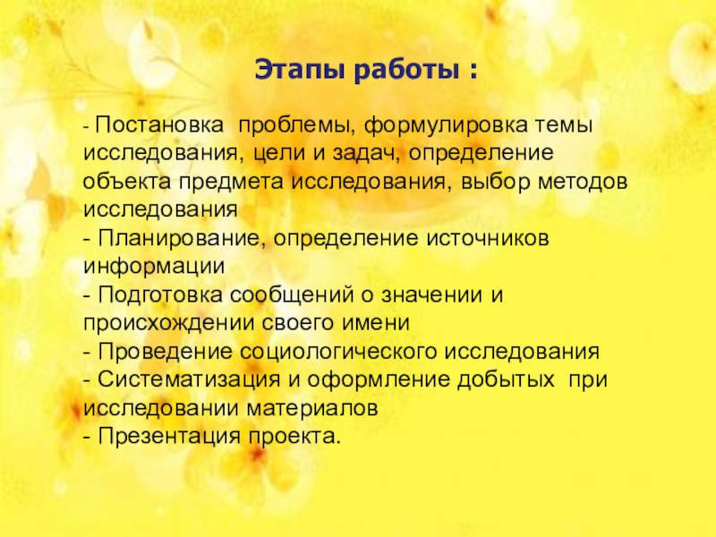 - Постановка проблемы, формулировка темы исследования, цели и задач,
