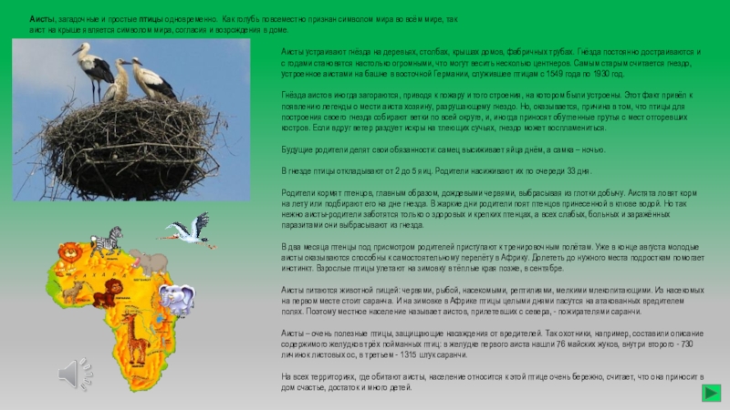 На всех территориях, где обитают аисты, население относится к этой птице очень бережно, считает, что она приносит в дом счастье, достаток и много детей.