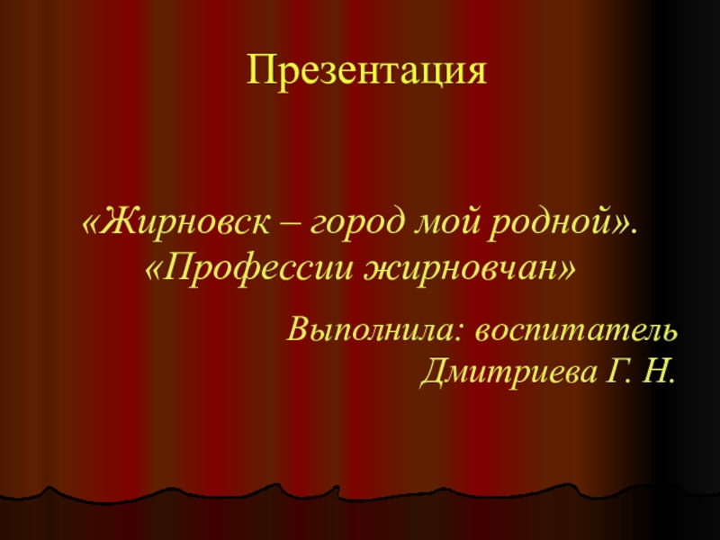 Презентация «Жирновск – город мой родной».«Профессии жирновчан»Выполнила: воспитатель Дмитриева Г. Н.