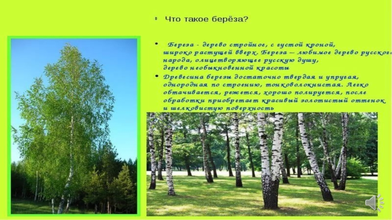 Презентация, доклад по познавательному развитию Русская береза
