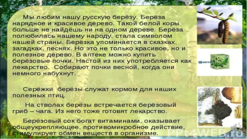 Презентация по познавательному развитию Русская береза Детские презентации