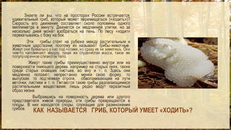 КАК НАЗЫВАЕТСЯ ГРИБ, КОТОРЫЙ УМЕЕТ «ХОДИТЬ»?