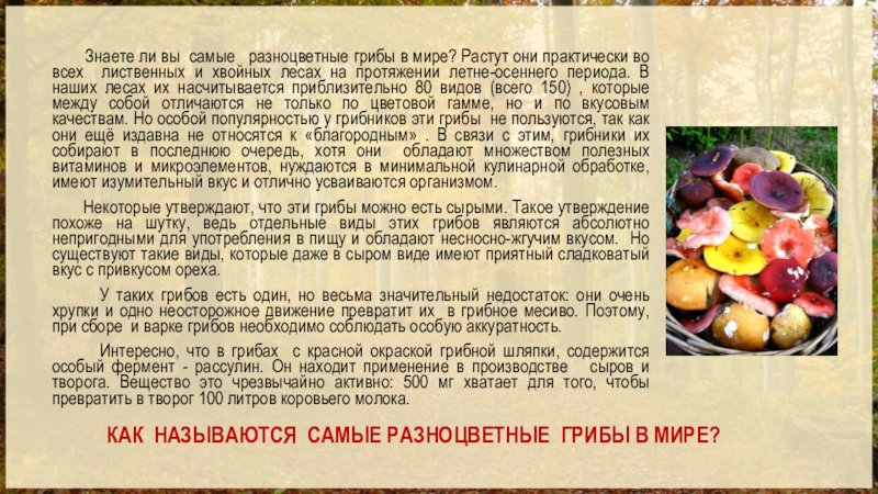 КАК НАЗЫВАЮТСЯ САМЫЕ РАЗНОЦВЕТНЫЕ ГРИБЫ В МИРЕ?