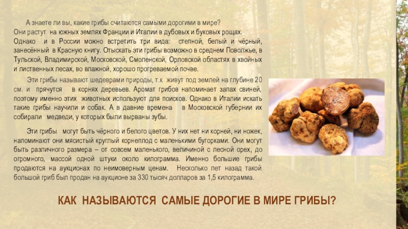 КАК НАЗЫВАЮТСЯ САМЫЕ ДОРОГИЕ В МИРЕ ГРИБЫ?