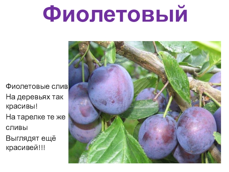 Фиолетовый Фиолетовые сливыНа деревьях так красивы!На тарелке те же сливыВыглядят ещё красивей!!!