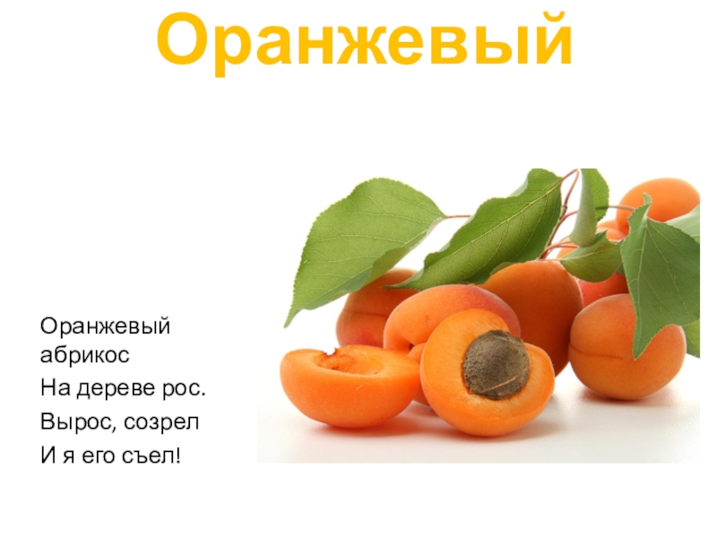 Оранжевый Оранжевый абрикосНа дереве рос.Вырос, созрелИ я его съел!