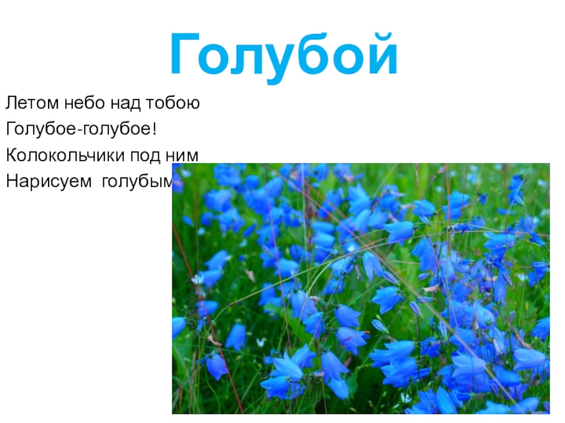 Голубой Летом небо над тобоюГолубое-голубое!Колокольчики под нимНарисуем голубым!