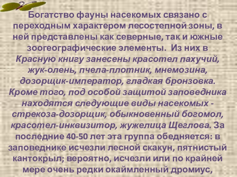 Слайд 34Богатство фауны насекомых связано с переходным характером лесостепной зоны, в ней