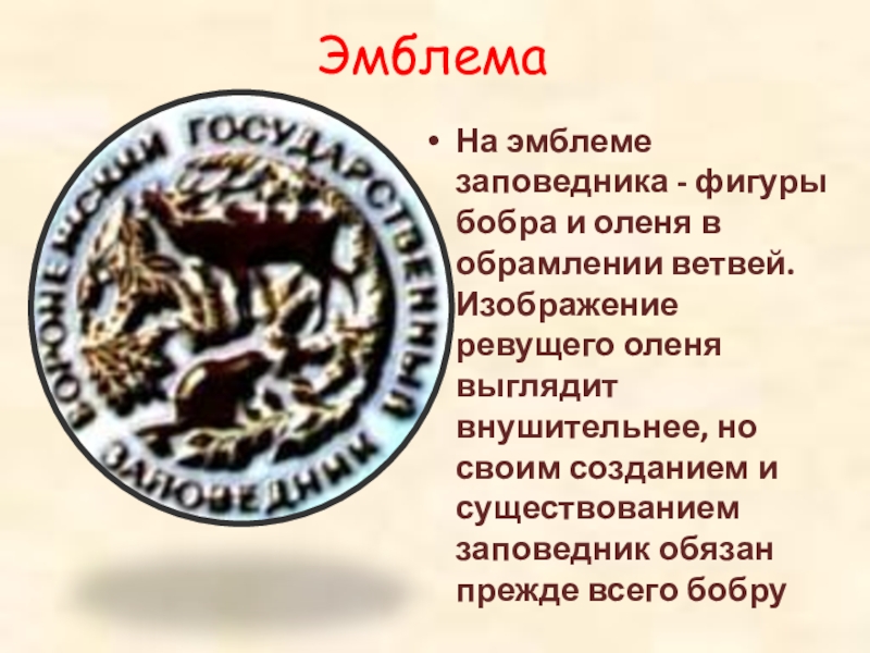 На эмблеме заповедника - фигуры бобра и оленя в обрамлении