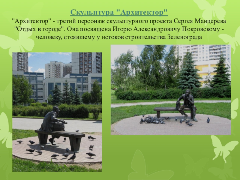 городе". Она посвящена Игорю Александровичу Покровскому - человеку, стоявшему у истоков строительства Зеленограда