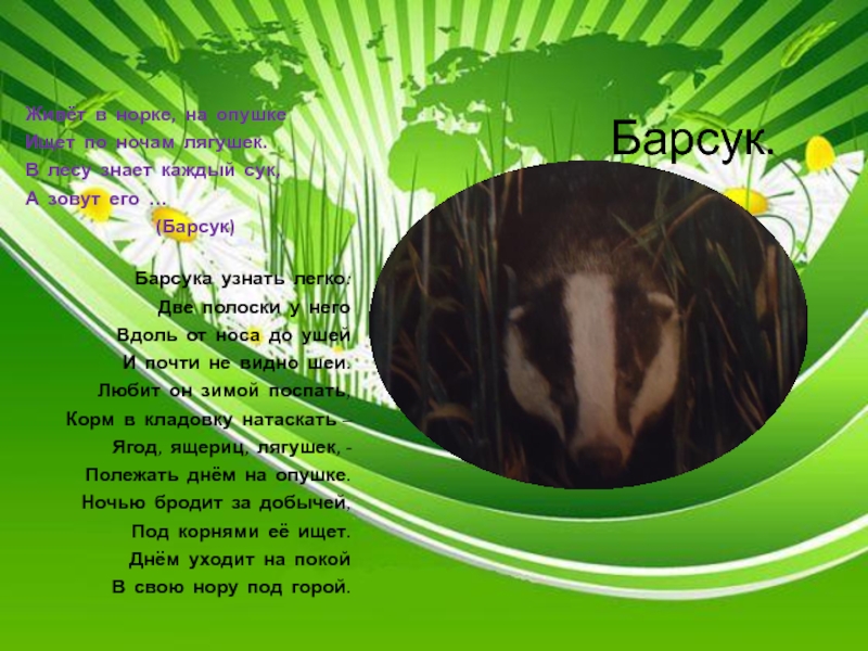Слайд 12 Барсук.