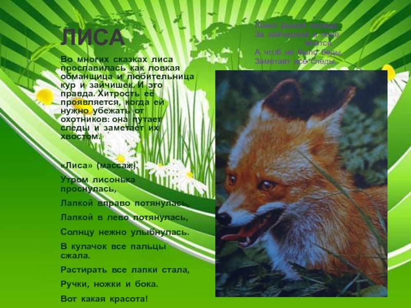 Утром лисонька проснулась,