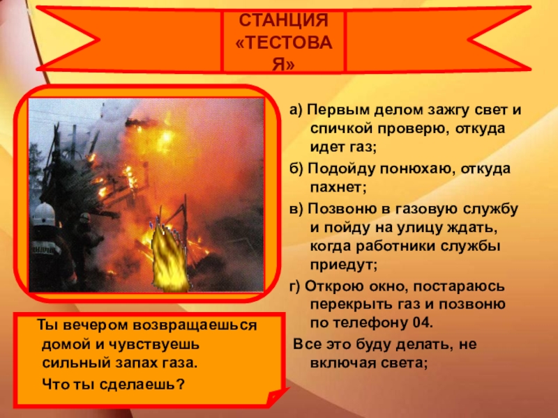 Ты вечером возвращаешься домой и чувствуешь сильный запах газа.