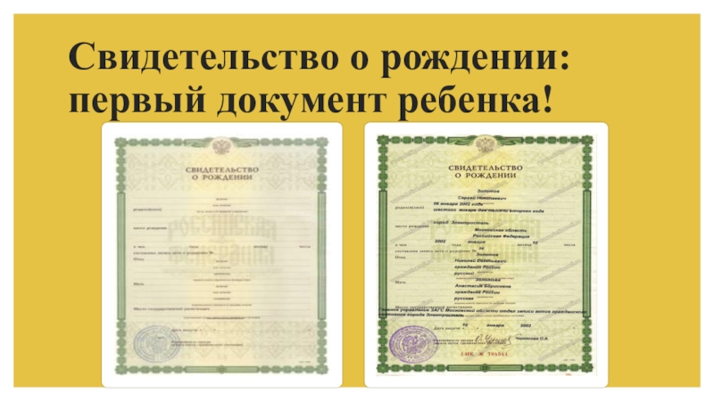 Слайд 6Свидетельство о рождении: первый документ ребенка!