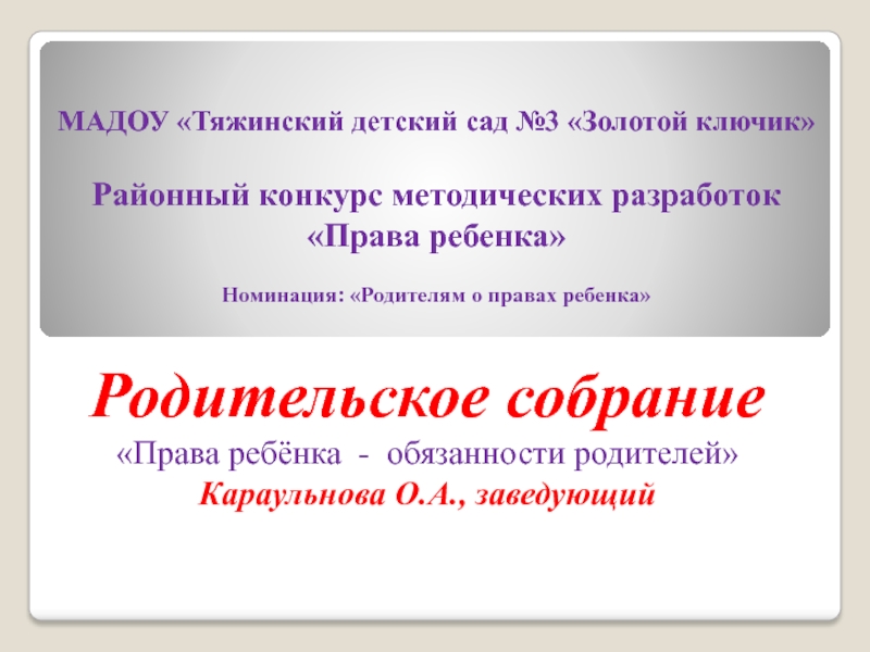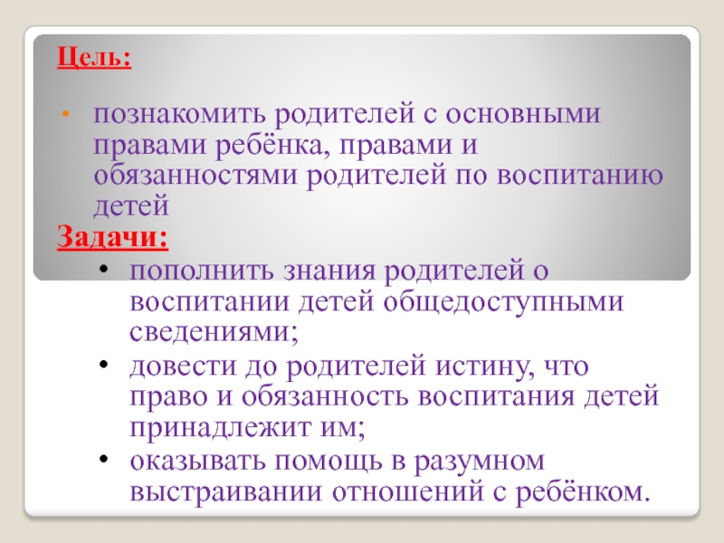 Родительское собрание «Права ребёнка - обязанности родителей»