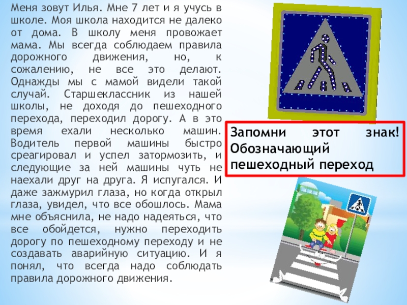 Запомни этот знак! Обозначающий пешеходный переход