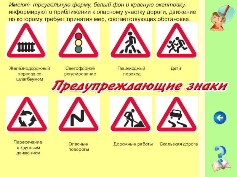 информируют о приближении к опасному участку дороги, движение по которому требует принятия мер, соответствующих обстановке.