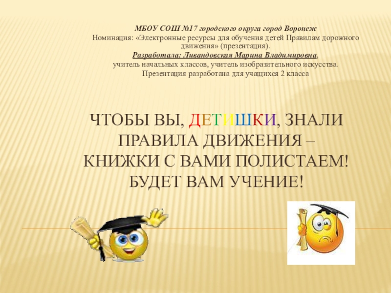 Номинация: «Электронные ресурсы для обучения детей Правилам дорожного движения» (презентация).