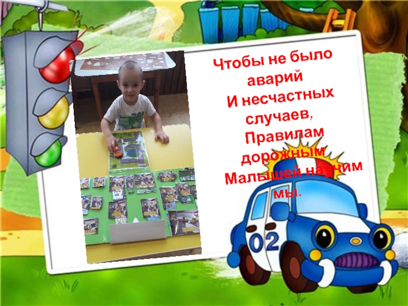 Чтобы не было аварий  И несчастных случаев,  Правилам дорожным      Малышей научим мы.
