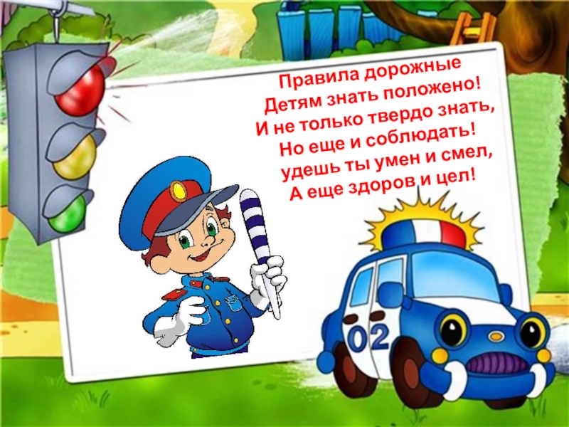 Правила дорожные Детям знать положено! И не только твердо знать, Но еще и соблюдать! Будешь ты умен
