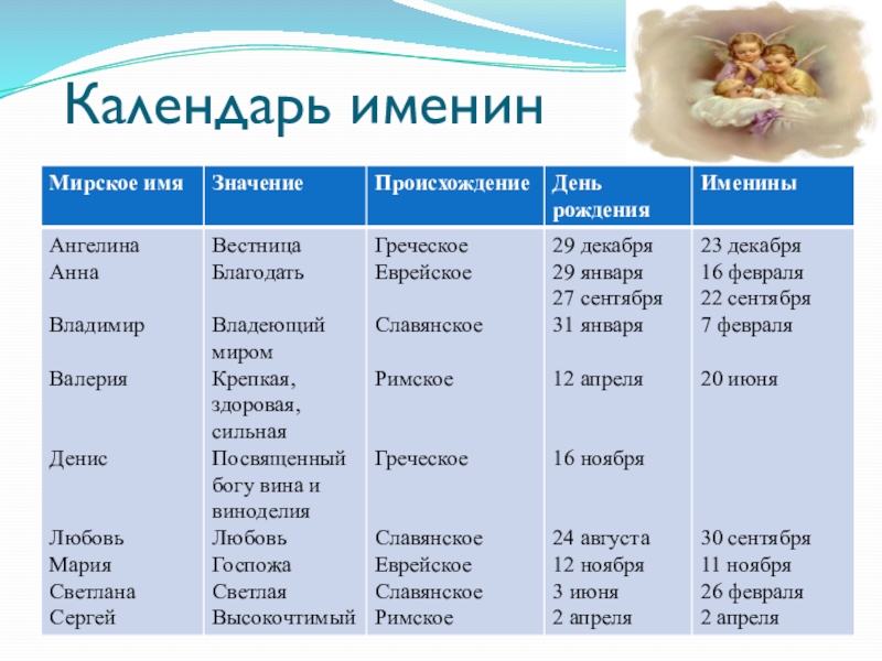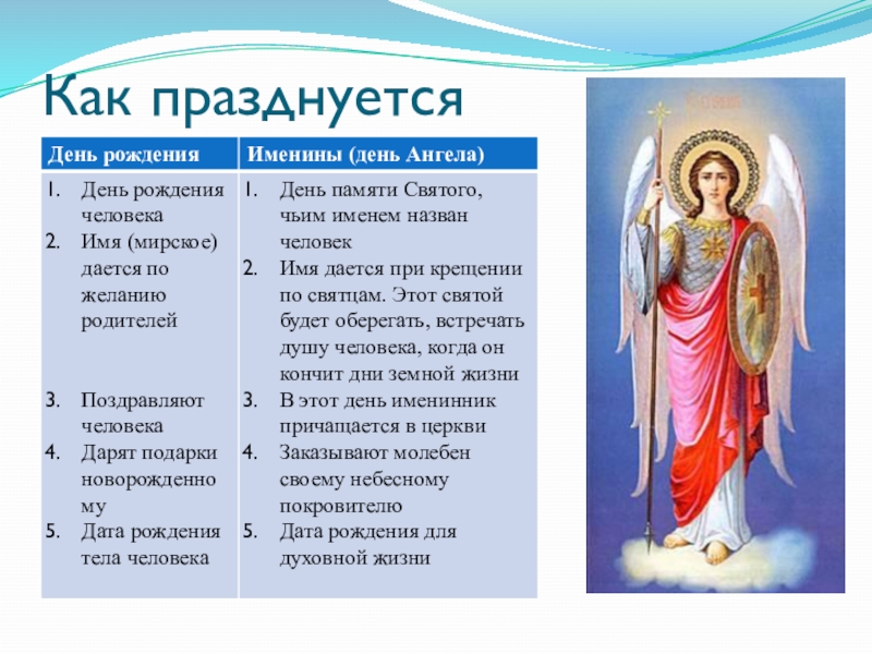 День памяти святого, имя которого вы носите, это и есть день вашего Ангела (именины);