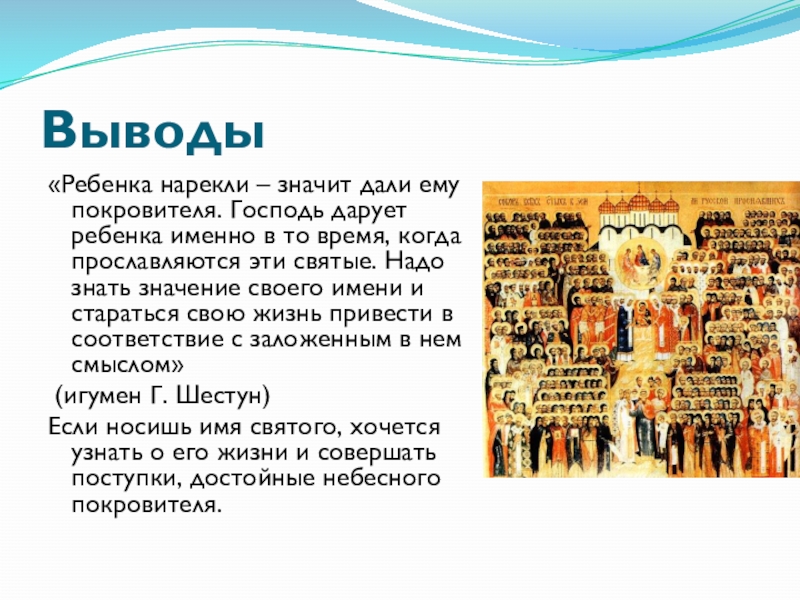 в то время, когда прославляются эти святые. Надо знать значение своего имени и стараться свою жизнь привести в соответствие с заложенным в нем смыслом»