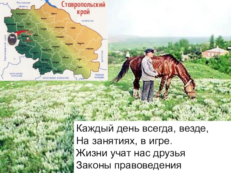 Каждый день всегда, везде,На занятиях, в игре.Жизни учат нас друзьяЗаконы правоведения
