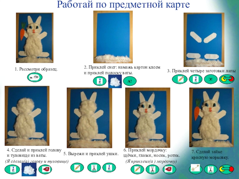 - Приклей снег: намажь картон клеем и приклей полоску ваты.