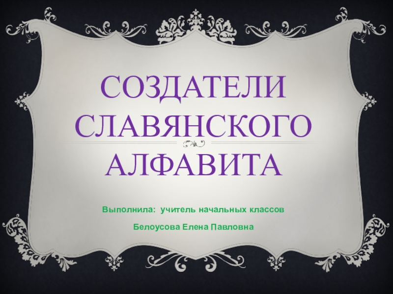Создатели славянского алфавитаВыполнила: учитель начальных классов Белоусова Елена Павловна