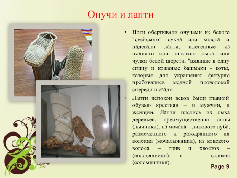 Ноги обертывали онучами из белого "свейского" сукна или холста