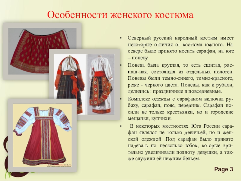южного. На севере было принято носить сарафан, на юге – поневу.