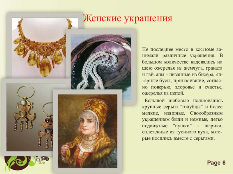 Не последнее место в костюме за-нимали различные украшения. В большом