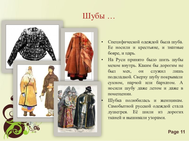 Специфической одеждой была шуба. Ее носили и крестьяне, и знатные