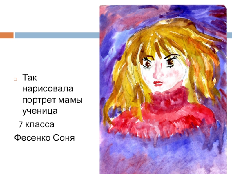 Так нарисовала портрет мамы ученица  7 классаФесенко Соня