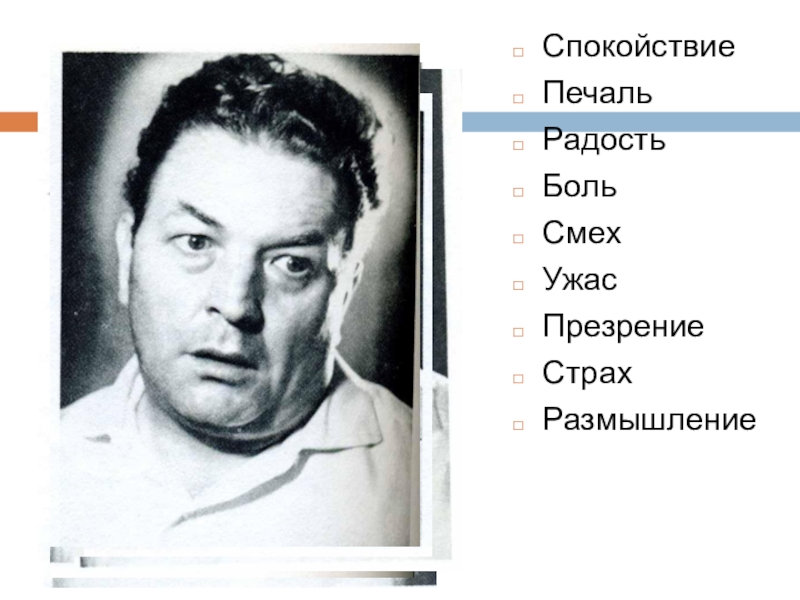 СпокойствиеПечальРадостьБольСмехУжасПрезрениеСтрахРазмышление
