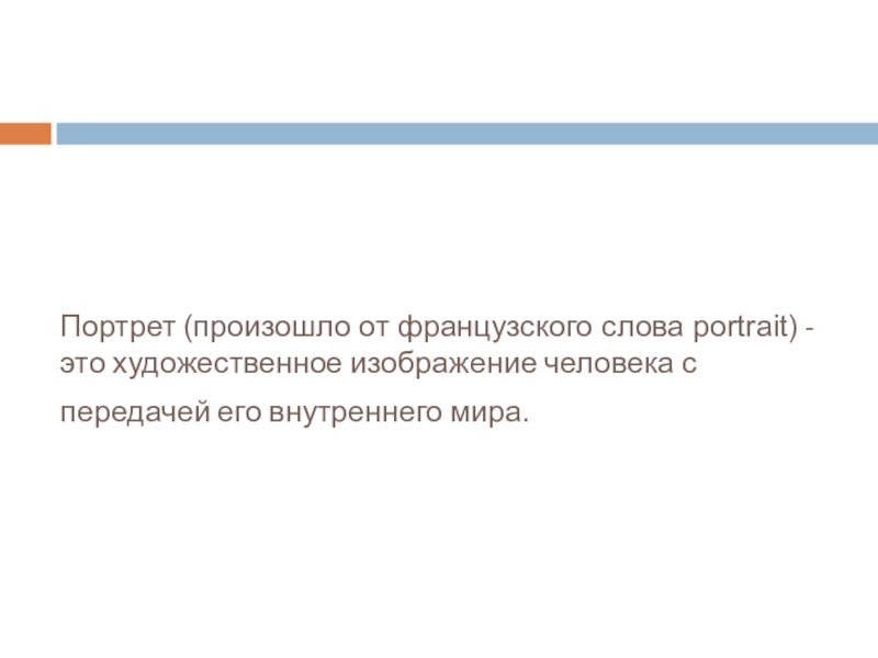 Слайд 2Портрет (произошло от французского слова portrait) - это художественное изображение человека
