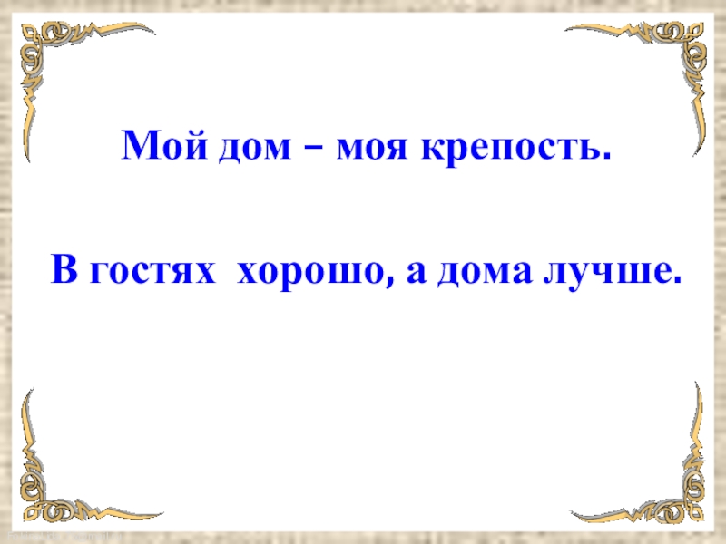 Мой дом – моя крепость.В гостях хорошо, а дома лучше.