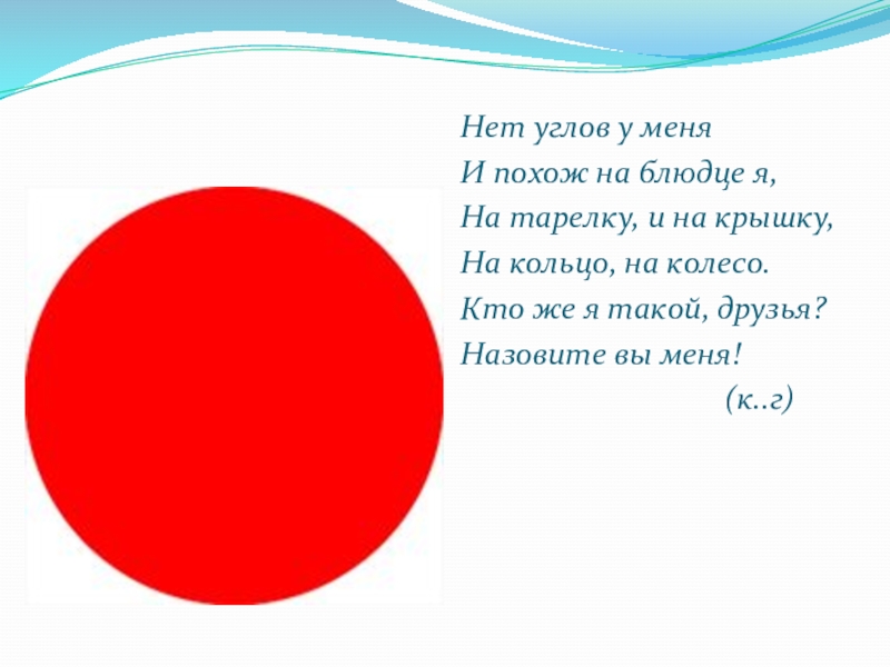 Нет углов у меняИ похож на блюдце я,На тарелку, и на крышку,На кольцо, на колесо.Кто же я такой, друзья?Назовите вы меня!