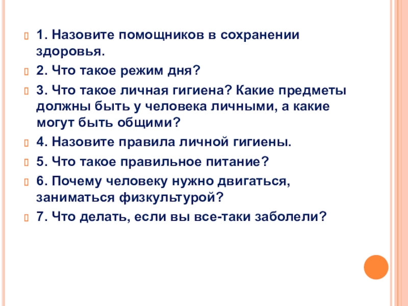 Слайд 211. Назовите помощников в сохранении здоровья.
