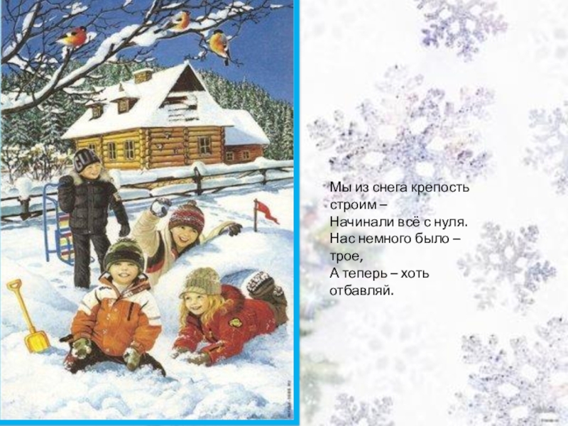 Слайд 6Мы из снега крепость строим –  Начинали всё с нуля.  Нас немного было