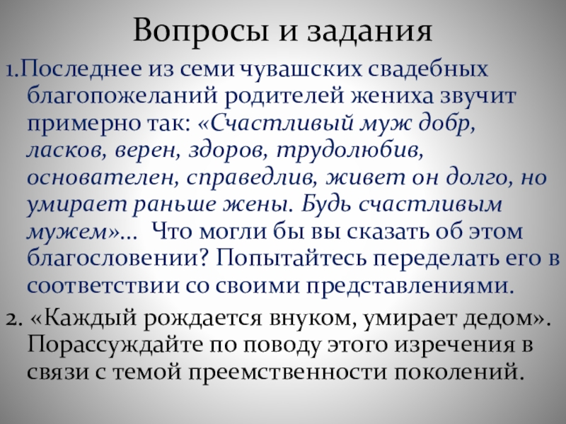 2. «Каждый рождается внуком, умирает дедом». Порассуждайте по поводу этого изречения в связи с темой преемственности поколений.