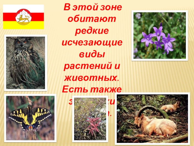 Слайд 6 В этой зоне обитают редкие исчезающие виды растений и животных.