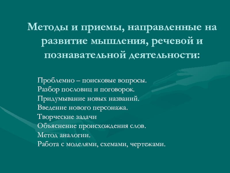 Слайд 9Методы и приемы, направленные на развитие мышления, речевой и познавательной деятельности: