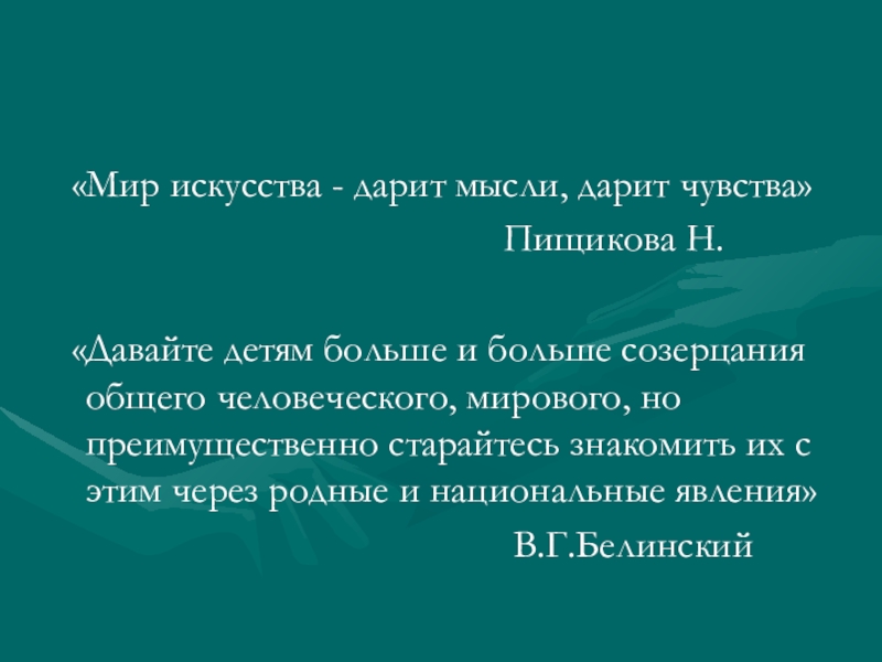 Слайд 2 «Мир искусства - дарит мысли, дарит чувства»
