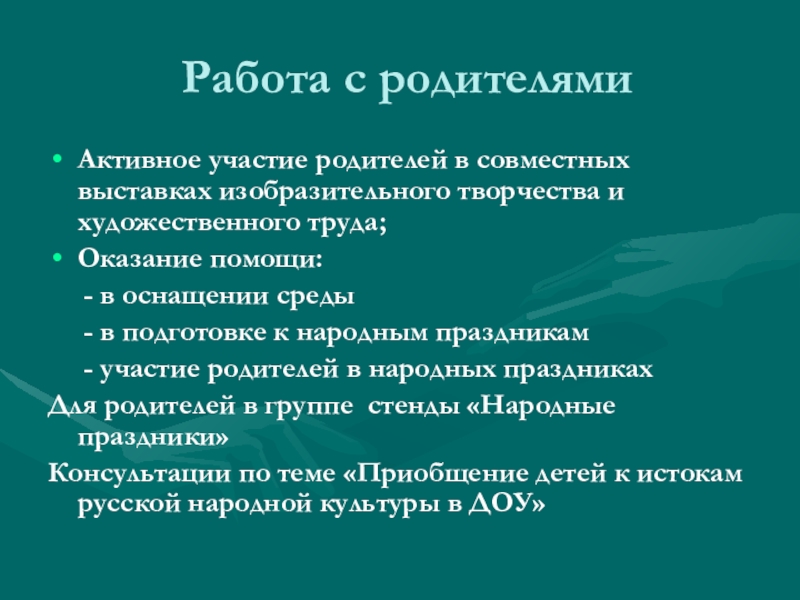 Консультации по теме «Приобщение детей к истокам русской народной культуры в ДОУ»