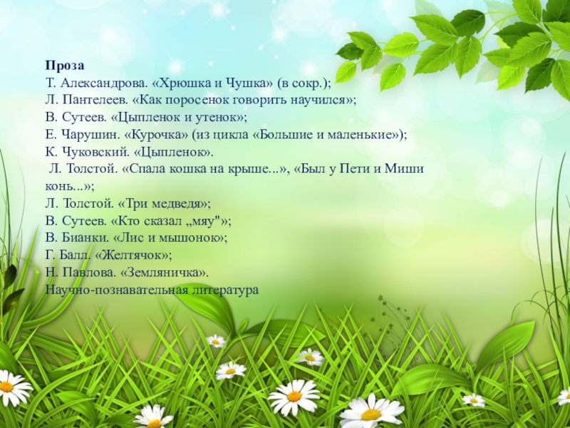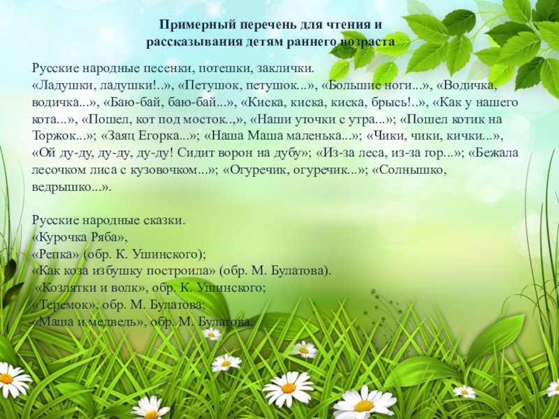 Слайд 8Примерный перечень для чтения и рассказывания детям раннего возраста