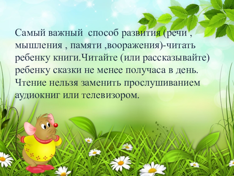 Самый важный способ развития (речи , мышления , памяти ,вооражения)-читать ребенку