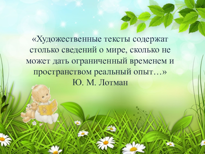 Слайд 10«Художественные тексты содержат столько сведений о мире, сколько не может дать