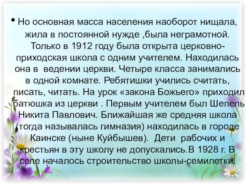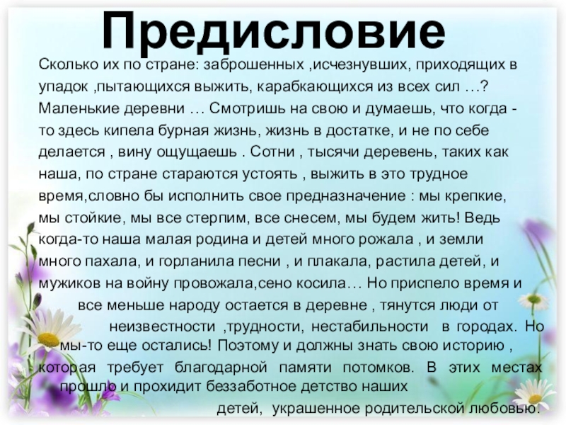 которая требует благодарной памяти потомков. В этих местах прошло и прохидит беззаботное детство наших