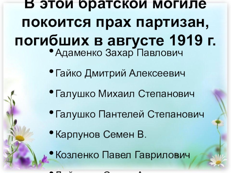 Слайд 26В этой братской могиле покоится прах партизан, погибших в августе 1919